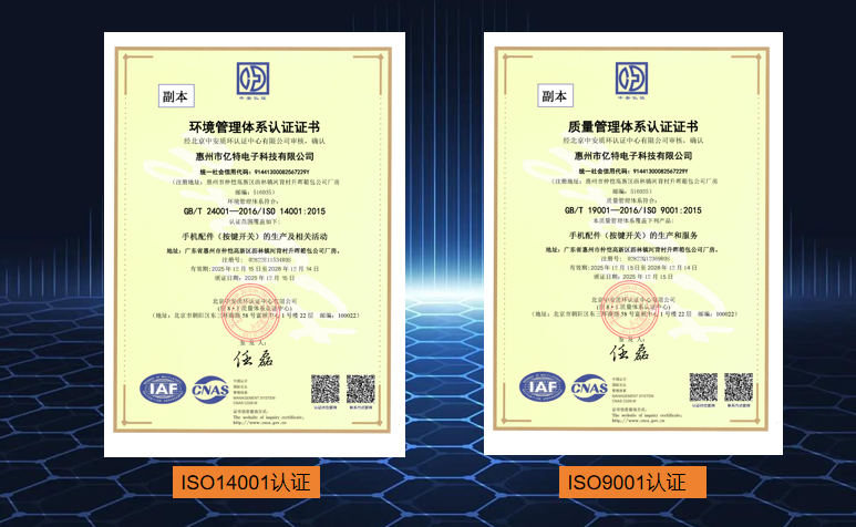惠州市亿特电子科技有限公司成立于2013年11月,位于惠州市仲恺高新区,注册资本500万元。公司自成立以来一直专注于手机开关以及相关工艺技术的研发、制造、销售,致力为全球贸易商终端客户提供优质的一站式物料配套服务,公司拥有专业的配套团队和资深技术人员,可为客户提供高效快捷的全方位服务,坚持客户至上、质量为本、精益求精的理念。拥有独立自主知识产权的自动化生产设备,高端精密的制造设备,确保为客户提供高质量的产品。生产的产品主要应用于手机、耳机、平板电脑、智能手表等便携式电子产品和电子穿戴设备。